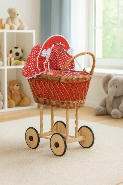 Fonott babakocsi MY SWEET BABY – Természetes szépség és kézzel készített tökéletesség Ajándékozzon gyermekének igazán különleges ajándékot! A MY SWEET BABY fonott babakocsi ötvözi a hagyományt, az eleganciát és a minőséget. Környezetbarát ültetvényekről származó természetes EU-s fonott anyagból kézzel készített, klasszikus, lekerekített formájával és aprólékos részletekre való odafigyelésével nyűgöz le. A tömör bükkfa váz tartósságot és kényelmet biztosít, míg a magas váz és az ergonomikus fogantyú tökéletessé teszi a babakocsit még idősebb gyermekek számára is. A fa kerekek fém tengelyekre vannak szerelve, biztonságos „klikk-klikk rendszerrel a sima gördülés érdekében. A gumi felnik védik a padlót és javítják a stabilitást. A babakocsi belsejét puha pamut béléssel látták el, és egy bájos babaágyneműgarnitúrát is tartalmaz. Az aranyos masnikkal díszített, mozgatható szövettető teszi teljessé az imádnivaló és időtlen dizájnt. Minden darab egyedi kézműves alkotás, egy dedikált címkével – tökéletes név vagy rövid üzenet felírására. Gyönyörű, figyelmes ajándék születésnapra, ünnepekre vagy babaváró bulira. Termékjellemzők: Kézzel szőtt, természetes, környezetbarát fonatból Masszív bükkfa váz kényelmes, magas fogantyúval Fa kerekek fém tengelyeken, „klikk-klikk biztonsági zárakkal Gumi felnik a csendes, sima mozgásért Baba ágyneműt és puha pamut bélést tartalmaz Állítható kapucni, textil masnikkal díszítve Ajándékcímkével ellátva, személyes ajánlással Méretek: Hosszúság: 50–55 cm Szélesség: 35 cm Magasság: 65 cm Tökéletes ajándék: Kislányoknak, akik imádják a babákkal játszani A stílusos, természetes játékok rajongóinak Szülőknek és nagyszülőknek, akik értékelik a minőséget, az esztétikát és a hagyományos kézművességet Az EU-ban kézzel készített, kivételes precizitással és kiváló minőségű, helyi forrásból származó anyagokból. Biztonságos játék. A termék CE-jelöléssel (Conformité Européenne) rendelkezik, megfelel az EU egészségügyi, biztonsági és környezetvédelmi követelményeinek. 3 év feletti gyermekek számára készült játék. Az Európai Parlament és a Tanács 2009/48/EK irányelve (2009. június 18. ) a játékok biztonságáról (HL L 170. , 2009.6. 30. , 1-37. o. ).